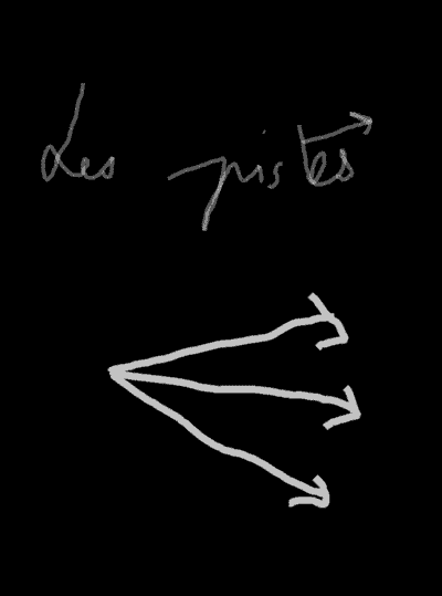 Souvent ils commencent de haut les films, EN PANORAMIQUE le survol d’une forêt un désert filant le brouet des cascades, alors commencer l’écriture comme ça de haut en survol, pas même un horizon mais la page bouchée par le grand pays le grand paysage et puis descendre, fendre l’air jusqu’au trottoir, gros plan sur une petite tennis blanche sur la pédale d’un vélo, des mains d’homme qui boutonnent une chemise, une femme tenant un verre, nuque dévoilée par ses cheveux relevés, l’enfant et son vélo, la femme qui boit, l’homme devant le miroir.